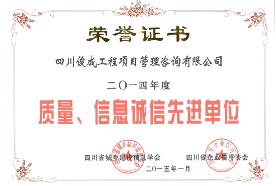 俊成建昱工程集團有限公司始建于二零零九年二月,中凱俊成建設咨詢有限公司為旗下子公司,公司分別位于四川省成都市成華區(qū)、德陽市凱州新城,公司注冊資本5000萬元人民幣。中凱俊成通過了ISO9001質量管理體系、ISO14001環(huán)境管理體系、ISO45001職業(yè)健康安全管理體系認證。   公司目前具有工程監(jiān)理綜合資質,工程造價咨詢甲級資質,工程招標代理甲級資質,冶金行業(yè)(冶金礦山工程) 甲級設計.....[詳情]